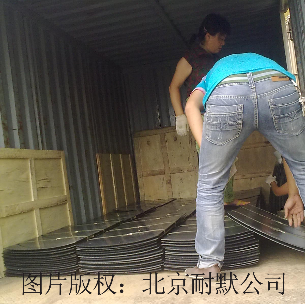 圖(1)納米陶瓷涂層耐磨襯板裝車發貨,此襯板具有耐磨性好,強度高,不粘結